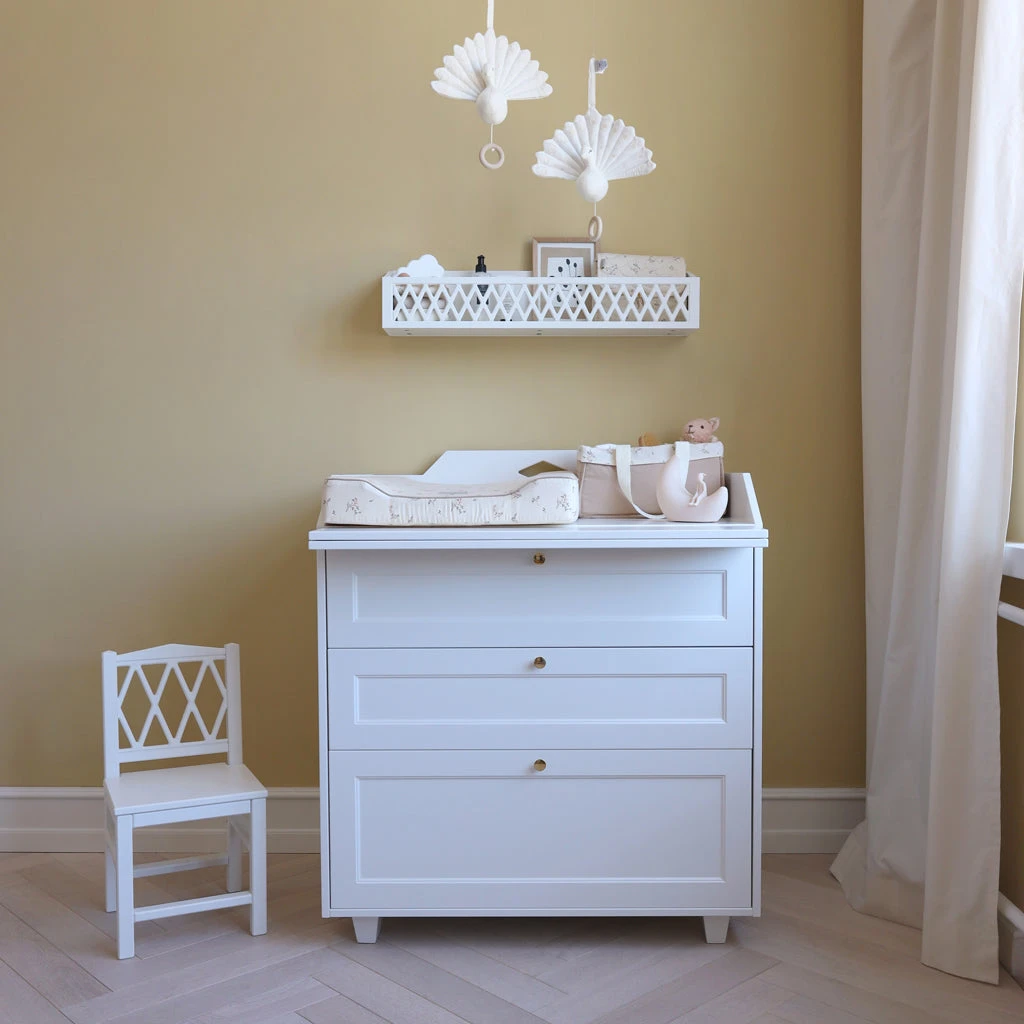 Like our Harlequin Changing Table, the extension piece can be removed, and the support piece can be pushed into place, transforming into a timeless and beautiful chest of drawers for years of use and enjoyment. We recommend using the changing cushion /pad from Cam Cam Copenhagen.