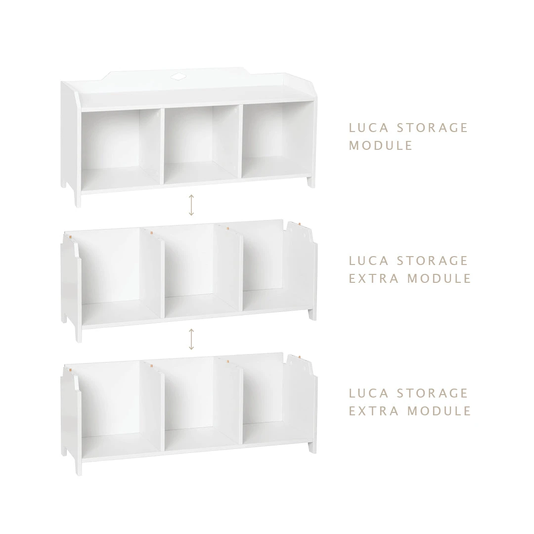 The Luca Storage Module is produced in the EU and is made of FSC certified wood and finished with water-based paint. The LUCA Storage Module and boxes are sold separately.