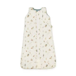 Sleeping Bag 0-6 Months in green, brown, and blue shades on a cream white background.