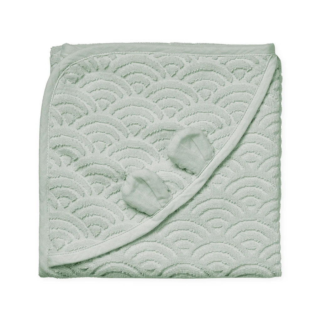 The towel has a small hood with the cutest little bear ears and is perfect for snuggling after a warm bath. The airy wave pattern makes the towel fast drying.