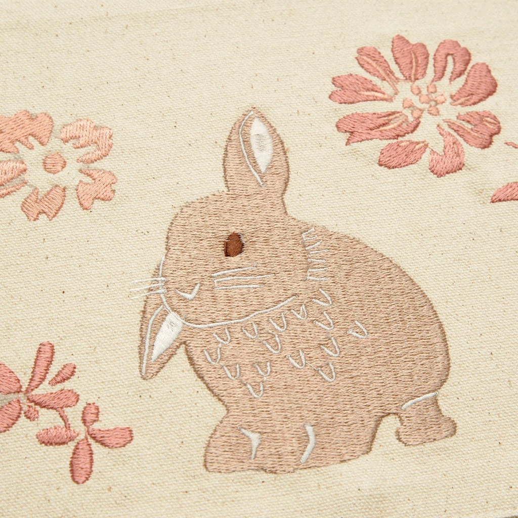 Featuring fine embroidery of a sweet little bunny inspired by our beloved Augusta print, it includes two sweet pompoms at the bottom corners for a charming vintage touch.