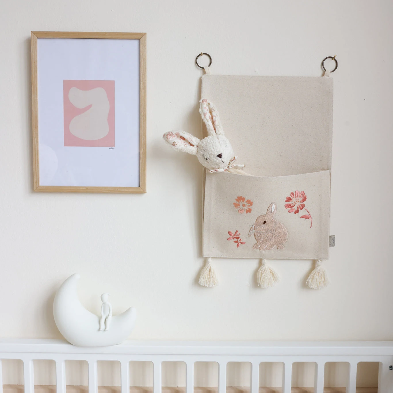 Easily hung with metal rings, this wall pocket is perfect for organizing small items, whether essentials for the changing table, utensils for the kid’s desk, or toys and other treasures, while bringing cosy character to your kid’s room.