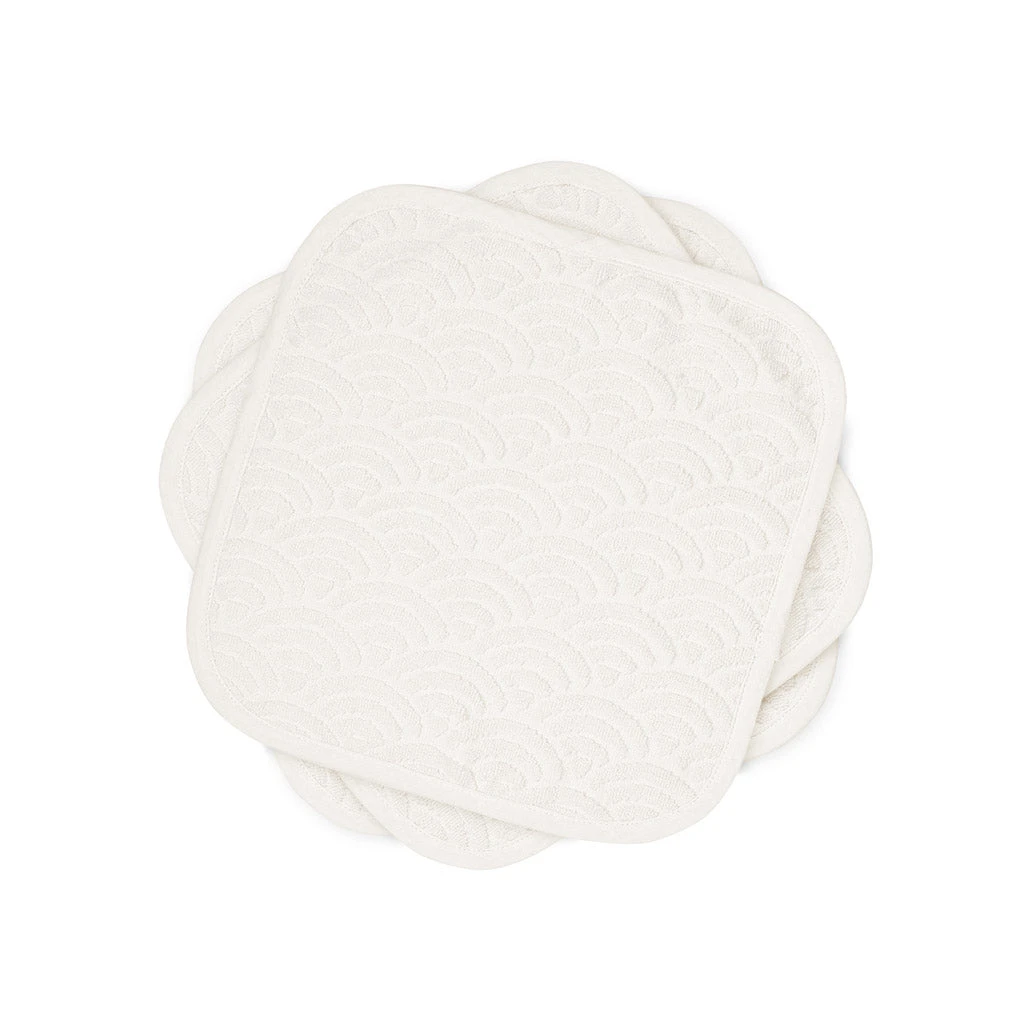 Set of three soft, lush, and thick Wash Cloths made from 100% GOTS-certified organic cotton and woven in the iconic Cam Cam wave pattern. The airy wave pattern makes the Wash Cloth fast drying.